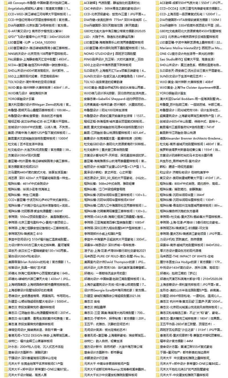 《2021年国内一线设计大咖 · 作品集》 ↓ ↓ ↓ ↓ 本产品共计12G,共有200多套,8500多张设计案例!