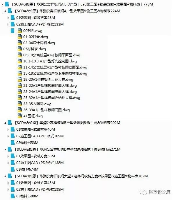 《【SCDA&如恩】华润公寓样板间A.B.D户型》 cad施工图+软装方案+效果图+物料表 内容格式:JPG,PDF, CAD 大小:778M