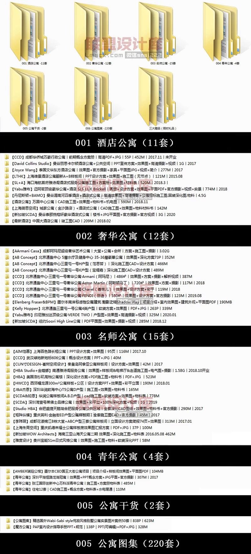 3. 公寓设计资料分类明细,方便查找。 分类如下: 酒店公寓 | 奢华公寓 | 青年公寓 名师公寓 | 公寓干货 | 高清图集 等等