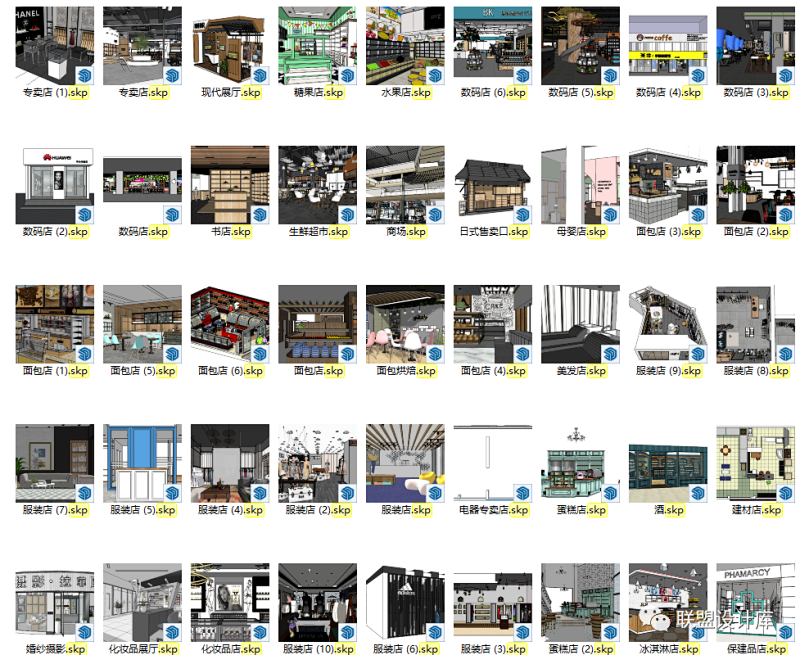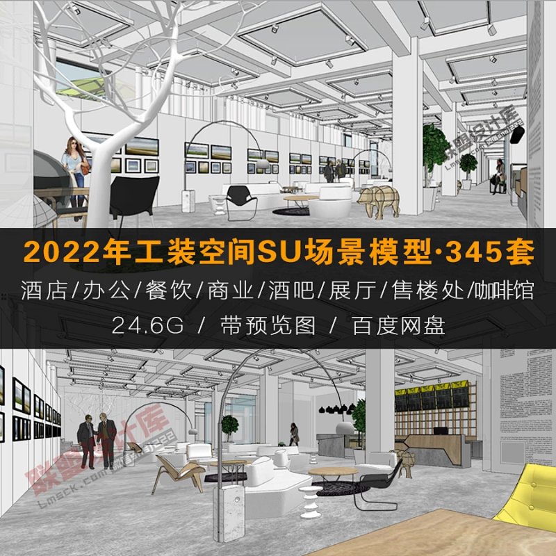 2022年工装空间SU场景模型345套 | 酒店/办公/餐饮/商业/酒吧/...